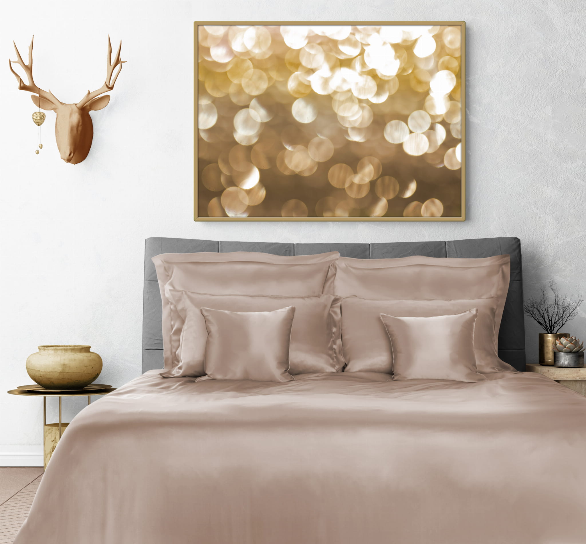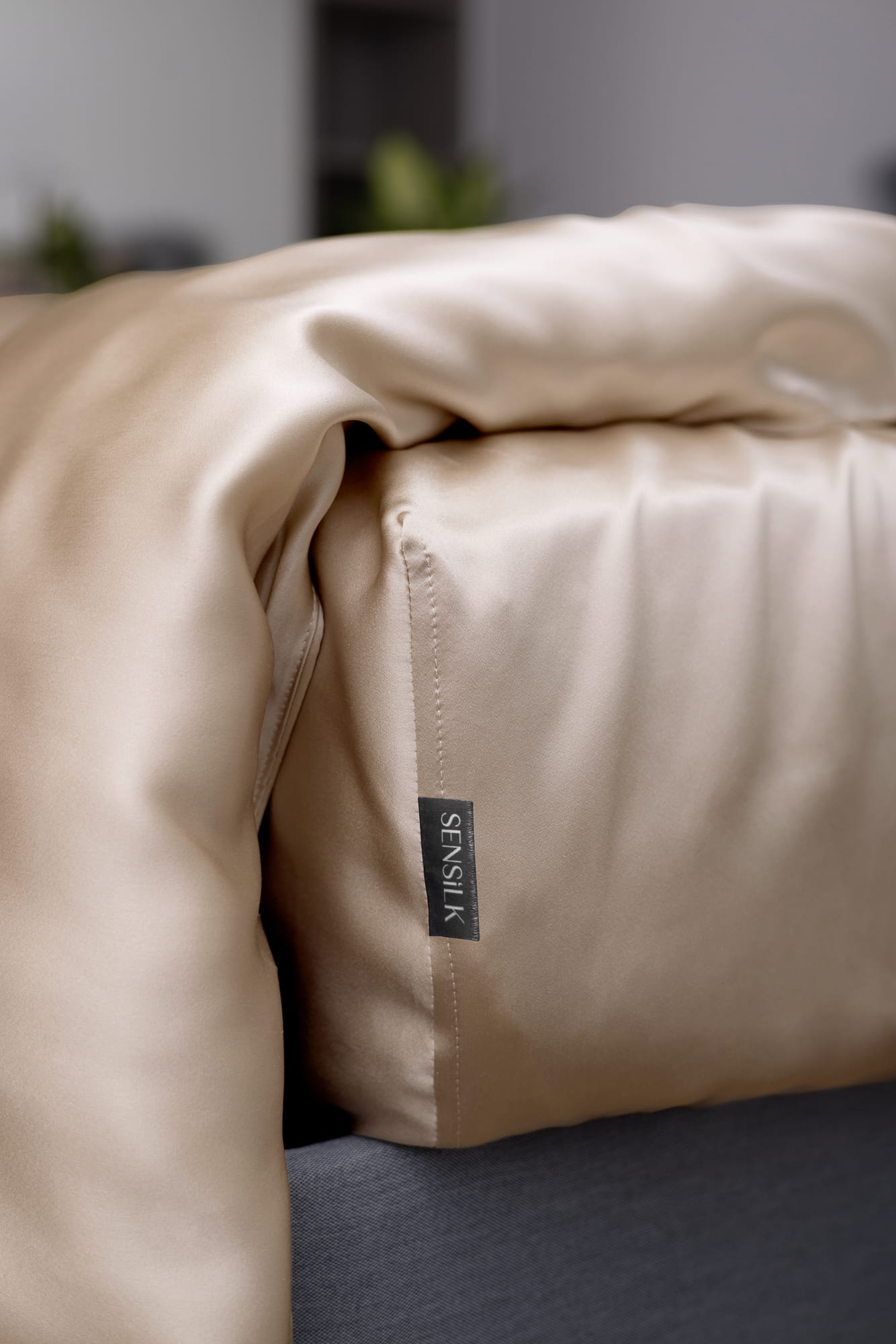 Pościel jedwabna uszyta z najwyższej jakości jedwabiu naturalnego w delikatnym kolorze złotym.