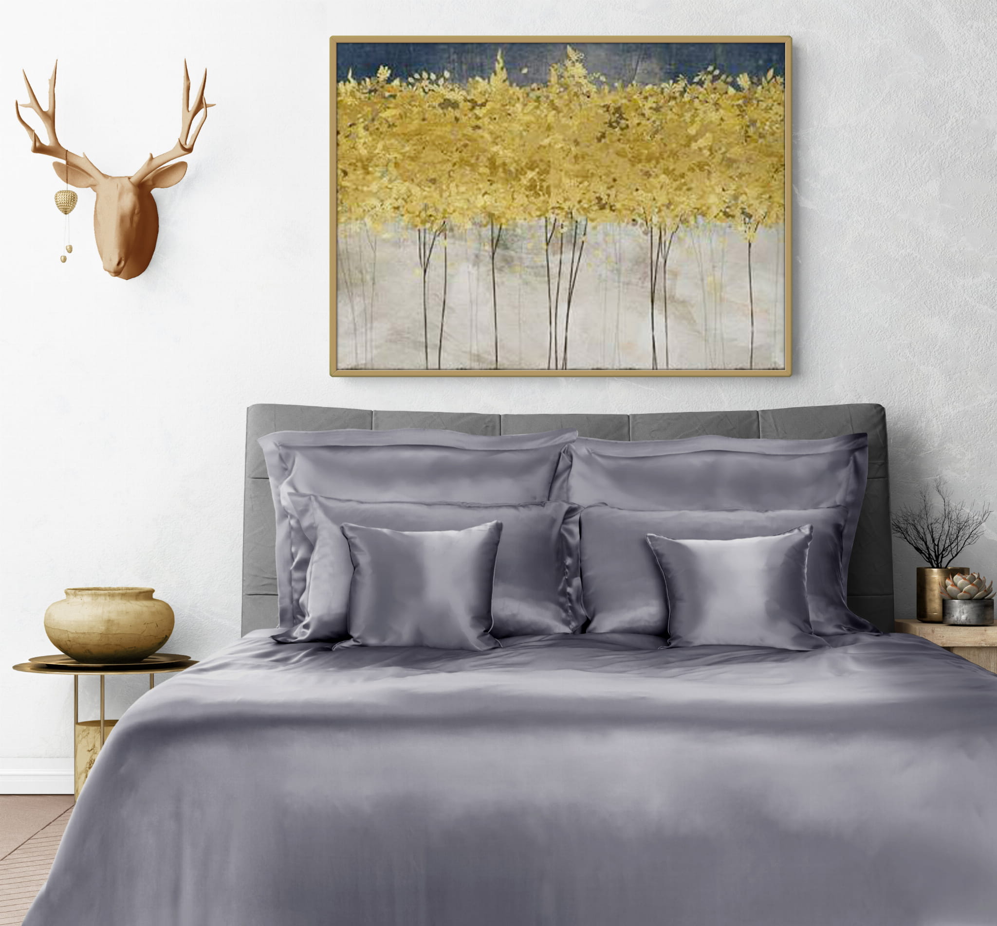 JEDWABNY ZESTAW POŚCIELI 160/200+2x 50/70 - kolor: Srebrny Ciemny